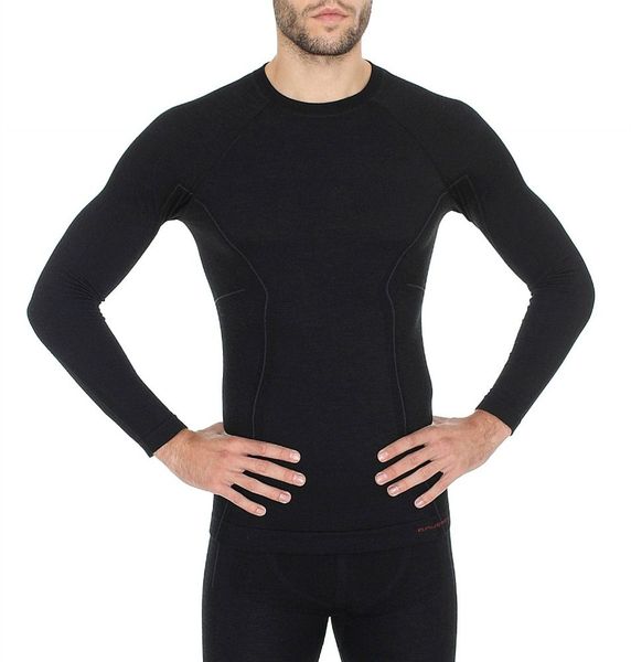 Brubeck Koszulka męska z długim rękawem Active Wool czarna r. L (LS12820)