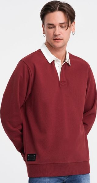 Ombre Bluza męska z białym kołnierzykiem polo – bordowa V3 OM-SSNZ-0132 S