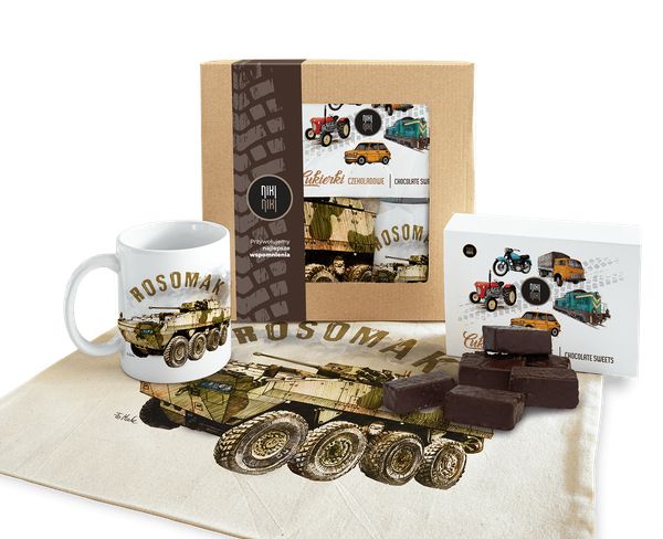 Paczka prezentowa z transporterem Rosomak cukierki czekoladowe 125 gkubek ceramicznytorba bawełniana Paczkę można dodatkowo powiększyć o koszulkę lub bluzę (Kliknij aby zobaczyć wymiary i specyfikacje)Transporter RosomakKołowy transporter opancerzony (KTO) Rosomak mimo stosunkowo niedługiego stażu w naszej armii stał się symbolem jej przemian, nowoczesności, zerwania z linią radzieckich konstrukcji. Przypomnę tylko, że bazą dla tego transportera była fińska […]