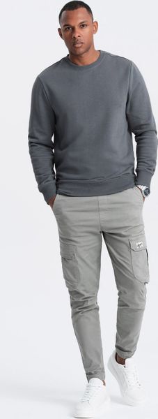 Ombre Nierozpinana bawełniana męska dresowa bluza BASIC grafitowa V11 OM-SSBN-0159 S
