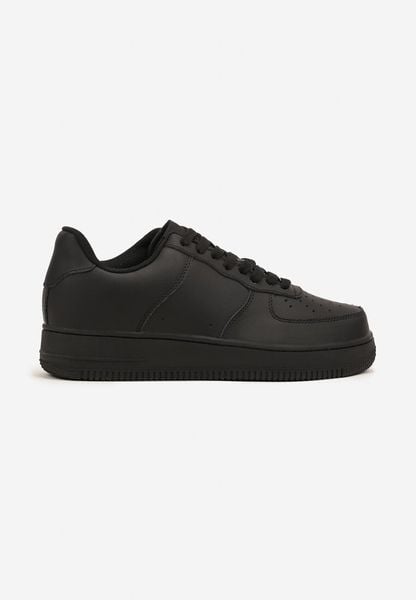 Czarne Płaskie Buty Sportowe Sneakersy ze Sznurowaniem i Napisem Terelena