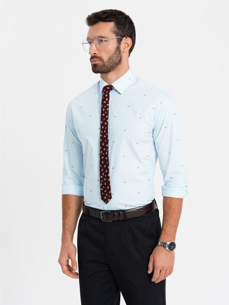 Ombre Klasyczna męska bawełniana koszula SLIM FIT w rybki - błękitna V4 OM-SHCS-0156 XXL