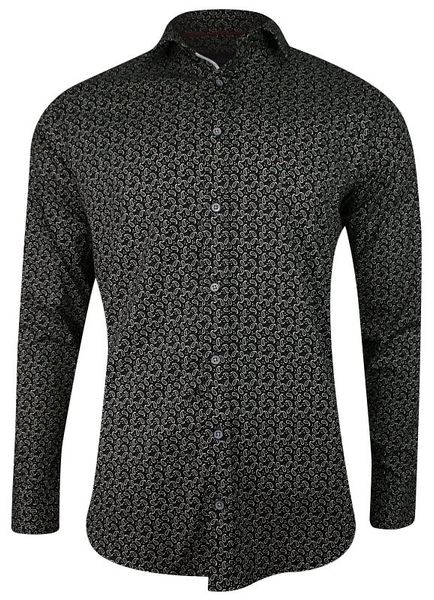 Czarna Koszula Męska, Wizytowa -RIGON- Krój Prosty, Długi Rękaw, w Biały Wzór Paisley