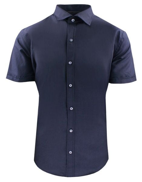 Koszula Wizytowa Granatowa z Krótkim Rękawem, Jednokolorowa, Taliowana -QUICKSIDE