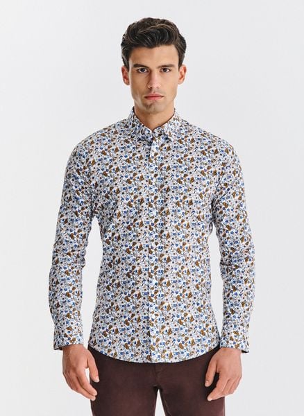 Koszula w kwiaty – Pako Lorente. Koszula z długim rękawem. Biała bawełniana koszula w kwiaty. Skład: 97% bawełna, 3% elastan. Fason: Slim.