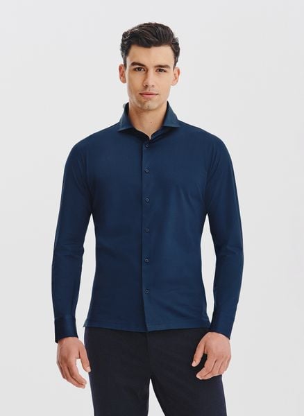 Granatowa koszula z dzianiny – Pako Lorente. Koszula z długim rękawem. Dzianinowa koszula z bawełną. Skład: 91% bawełna, 9% elastan. Prosty fason.
