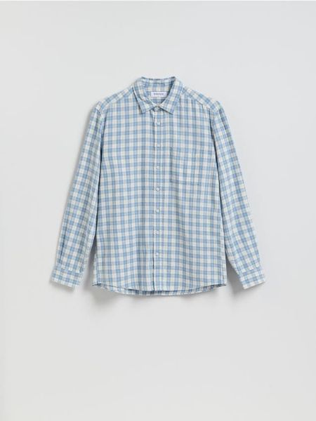Koszula o regularnym kroju, wykonana z tkaniny z lnem.