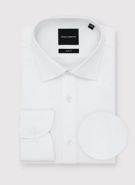 Biała koszula męska – Pako Lorente. Koszula z długim rękawem. Skład: 100% bawełna merceryzowana. Fason Slim. Kołnierzyk typu włoskiego. Basic.