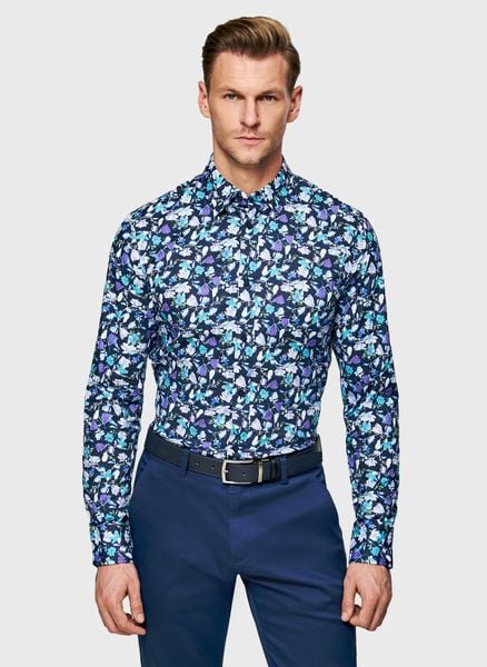 Koszula męska w kwiaty – Pako Lorente. Koszula we wzór kwiatowy z długim rękawem. Wiosenna koszula na guziki. Skład: 97% bawełna, 3% elastan. Fason Slim.