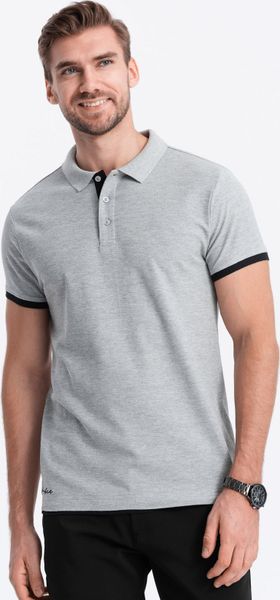 Ombre Męska koszulka polo z kolorowymi akcentami szary melanż V1 OM-POSS-0105 M