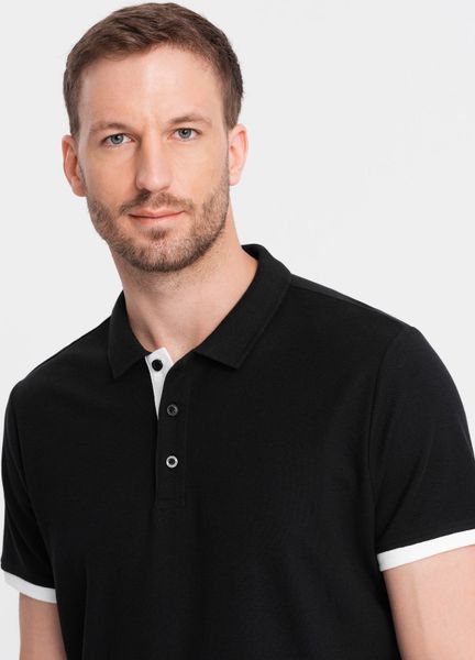 Ombre Bawełniana męska koszulka polo z kontrastowymi wykończeniami czarna V8 OM-POSS-0113 M