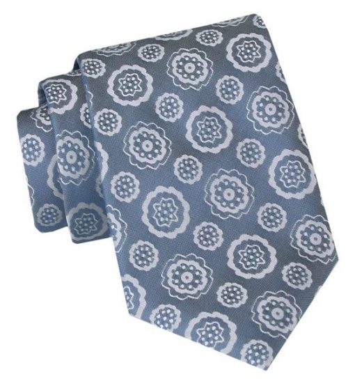 Klasyczny, Szeroki Krawat Męski CHATTIER - Niebieski w Srebrne Kwiaty