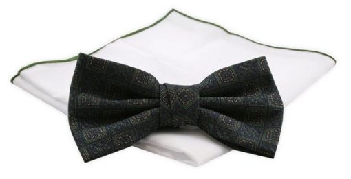 Zielona Mucha Męska -ALTIES- z Taką Samą Poszetką, Trawiasta, w Drobny Wzór Geometryczny