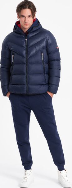 Kurtka męska Ombre Kurtka męska zimowa pikowana z łączonych materiałów – granatowa V2 OM-JAHP-0145 XL