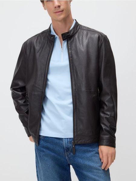 Skórzana kurtka ze stójką – ciemnobrązowy