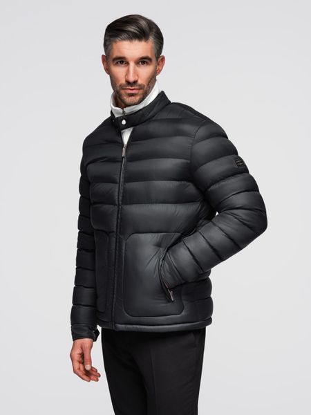 Pikowana klasyczna kurtka męska ze stójką – czarna V1 – Rozmiar: M