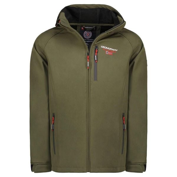 Geographical Norway ROYAUTE - softshell męski khaki z pomarańczowymi akcentami.