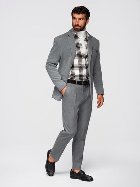 Dzianinowa męska marynarka o dopasowany kroju - jasnoszara V2 - Rozmiar: M