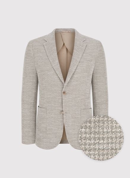 Beżowa marynarka w pepitkę – Pako Lorente. Jednorzędowa marynarka męska. Fason Slim. Skład: 71% poliester, 29% bawełna. Marynarka z półpodszewką.