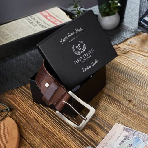 Długość: 110 cm Brązowy pasek wykonano ze skóry naturalnej. Prosta stalowa klamra utrzymana w postarzanym stylu vintage z zarysowaniami na froncie nadaje akcesorium codziennego charakteru. Pasek jest zapakowany w sztywne pudełko prezentowe z logiem producenta na froncie. Charakterystyka paska 05Z02Model: 05Z02Producent: Paolo Peruzzi Materiał: skóra naturalnaKolor: brązowaKlamra: klasyczna, stalowa WymiarySzerokość: 3,8 cm Długość (mierzona bez klamry): 110 cm