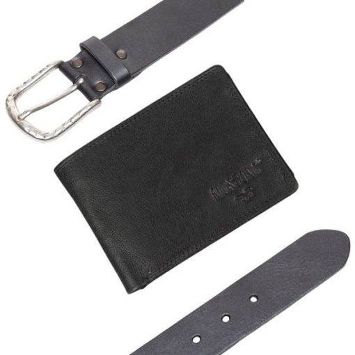 ZESTAW PREZENTOWY MUSTANG – SKÓRZANY PORTFEL I PASEK MĘSKI BLACK