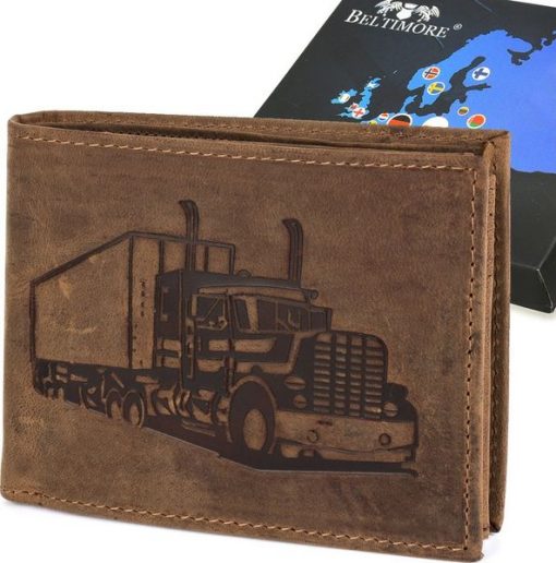 Beltimore Portfel skórzany męski brązowy nubuk skóra Ciężarówka Tir RFiD Beltimore R89