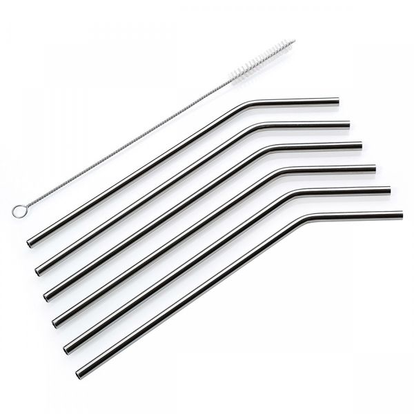 stalowe słomki do napojów ze szczoteczką do czyszczenia, 6 szt., 22,5 cm
