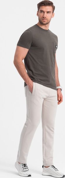 Ombre Męskie spodnie dresowe z nogawką bez ściągacza – jasnobeżowe V1 OM-PABS-0206 S