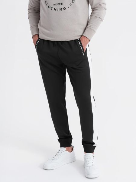 Dresowe męskie spodnie joggery z kontrastowymi lampasami – czarne V1 - Rozmiar: S