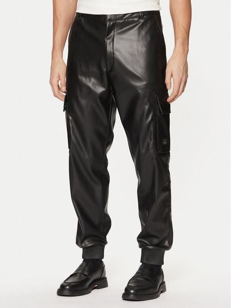 HUGO Spodnie z imitacji skóry Geza2511 50534827 Czarny Regular Fit