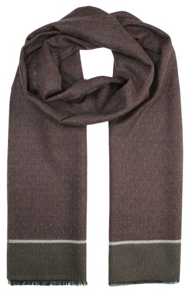 Szalik Miękki, Beżowo-Bordowy Wzór Geometryczny, V.Fraas -Cashmink- Elegancki, Męski