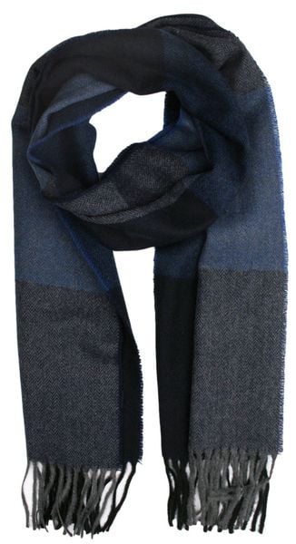 Szalik Granatowy w Kratkę Ciepły, z Frędzlami -V.FRAAS- Jesienno-Zimowy, Meski